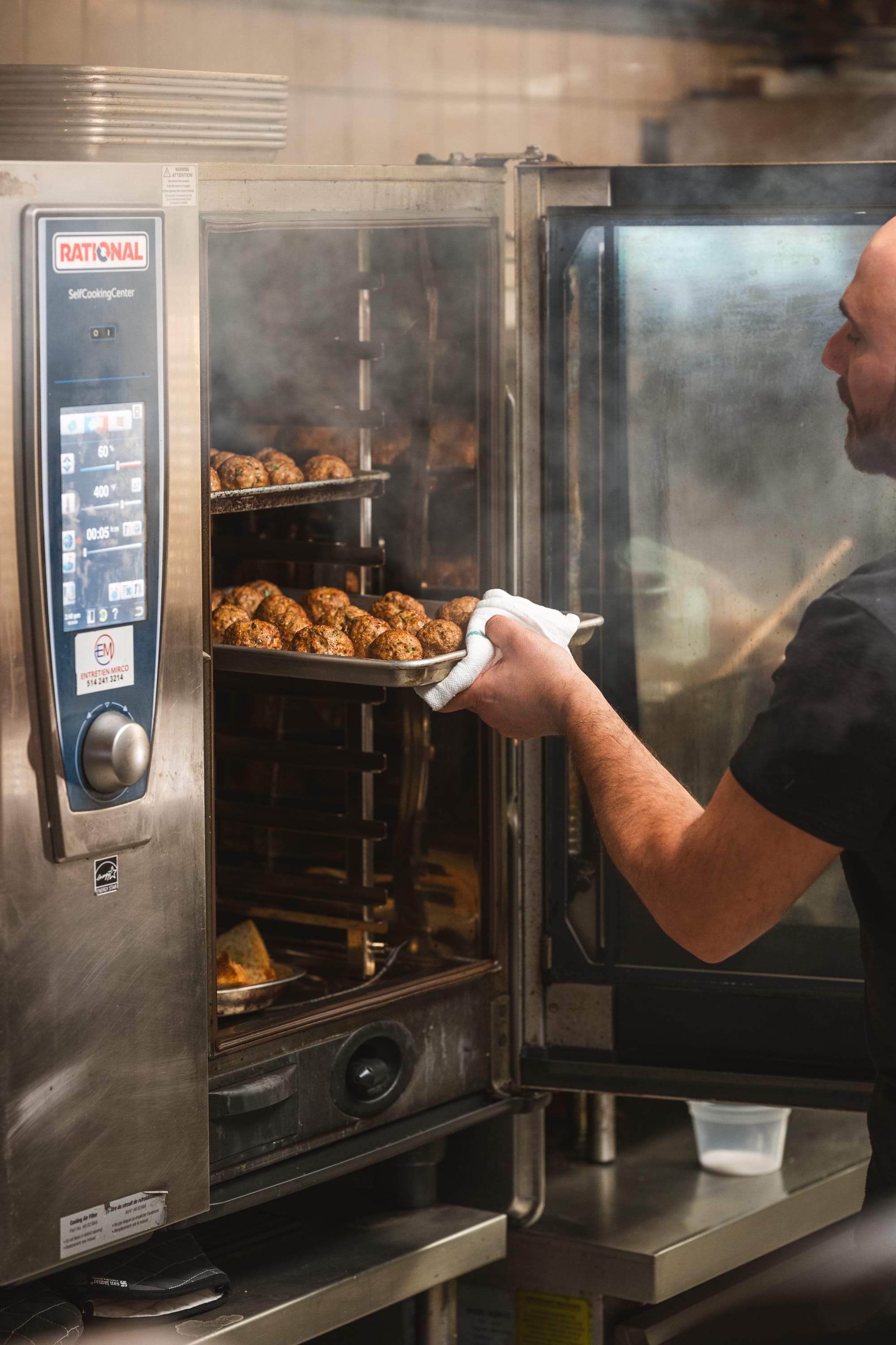By the time you’re reading this, chances are Mr. Amerigo has already rolled a few hundred meatballs, and he’s probably about to roll a few hundred more. His hands move with the kind of rhythm you only earn through repetition, a quiet muscle memory developed since the age of ten.