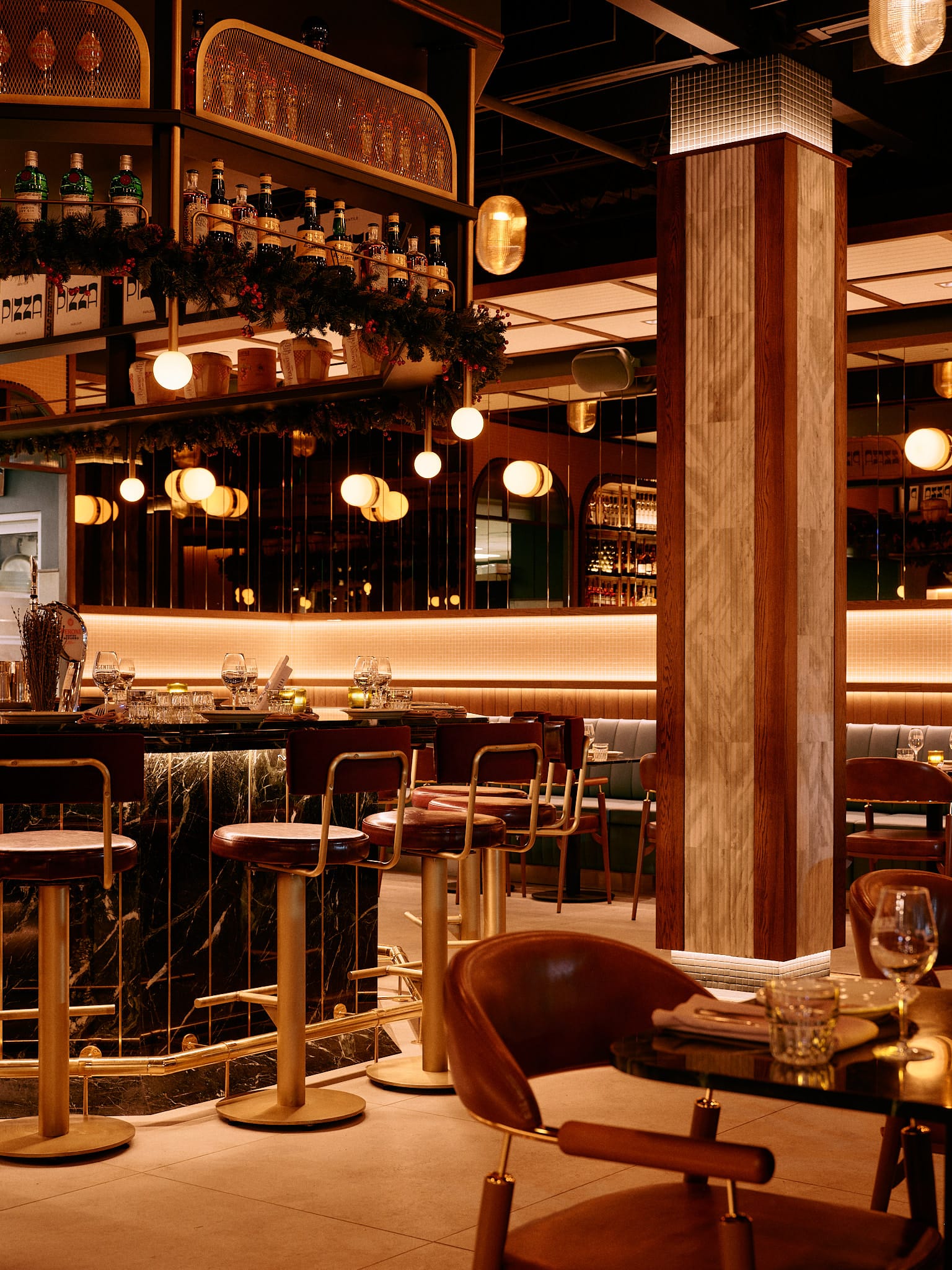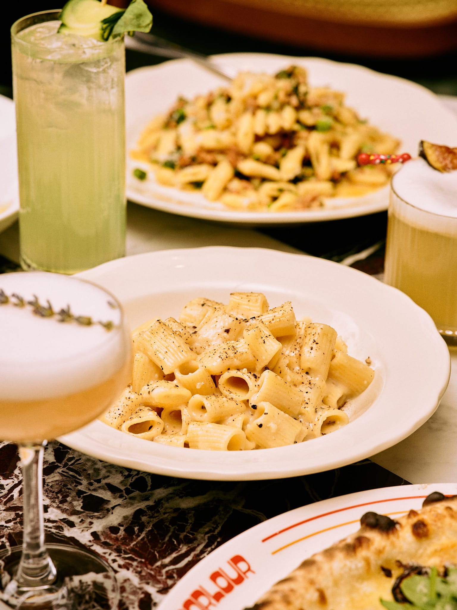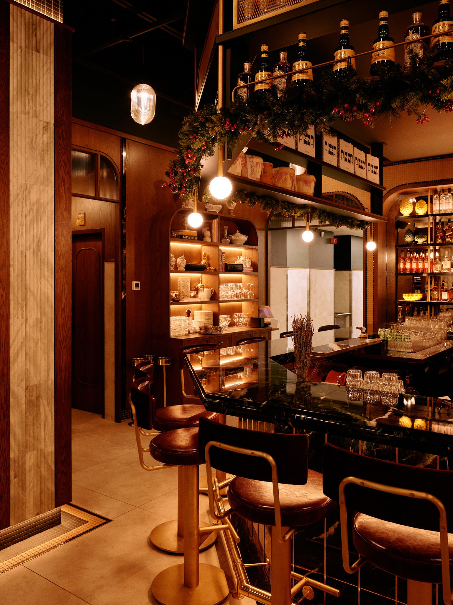 Lunch runs the standards—chicken cutlet, meatballs, eggplant parm, salads. Dinner merges both restaurants with pizza folded in. "You want pizza and a beer, you're having pizza and a beer," Anthony says. "You want homemade gnocchi and a meatball, you're having that. You want a 12-ounce New York strip, branzino—you touch all avenues. For the masses, you need a little bit for everybody."