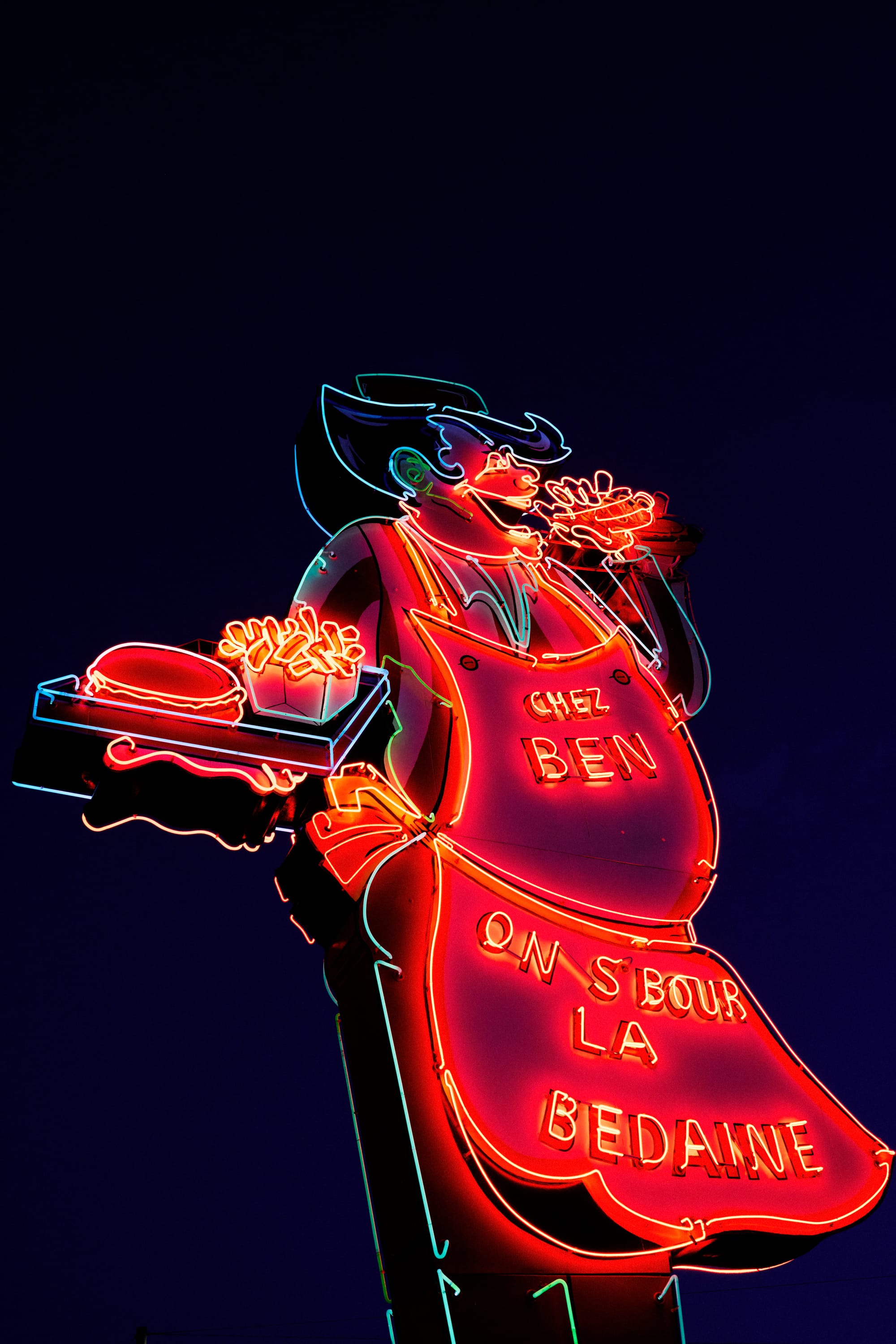 En 2024, des milliers de personnes ont applaudi alors qu’une enseigne au néon de neuf mètres de haut illuminait la nuit dans la ville de Granby, en Estrie. Chez Ben, animé par un motif lumineux palpitant, se nourrissait encore et encore de hot-dogs après 20 ans de délabrement.