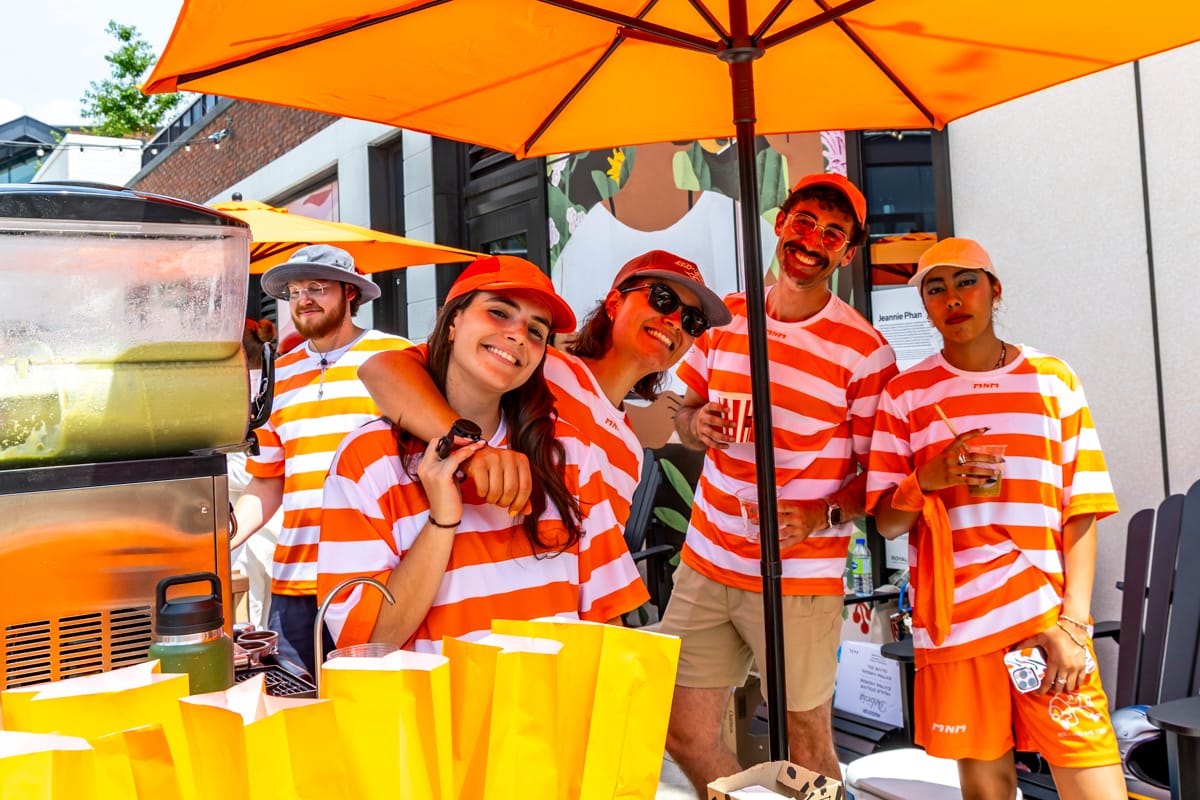 That’s 3,000 bodies moving to deep house in over 30-degree heat, framed by striped bunting, bold murals, and a signature orange-and-white palette. There were no booze-fuelled meltdowns, obviously no bleary-eyed 3 a.m. exits—just good coffee, clean fits, and serotonin by the bucket.