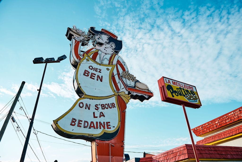Some of the most ambitious tables with exploratory menus are only a short drive away: at Restaurant Aux 2 Clochers, new blood from the nearby seasonal spot La Passe-Montagne (now closed) has turned a Frelighsburg destination into an exciting new project. Over at Espace Old Mill, one can settle in for a long and deeply storied tasting menu that plucks ingredients directly from fields you can see through their dining room’s windows. Bromont’s Chardo is reliable for those hunting down organic and natural wines paired with wild and local dishes. If you’re strapped for time, you can simply stop and eat poutine under the glow of Chez Ben’s 50-year-old, nine-metre-tall neon sign.