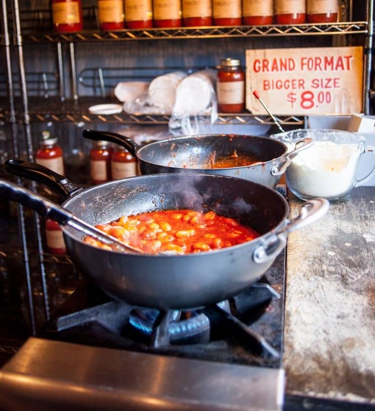 Always served to-go, it’s not uncommon to spot line-ups huddled around Drogheria Fine’s window to eat their gnocchi with chopsticks out of oyster pails. The menu couldn’t be simpler: gnocchi, spicy or not, with the option of extra cheese, all served from a large bubbling cauldron of the shop’s original export of homemade tomato sauce.