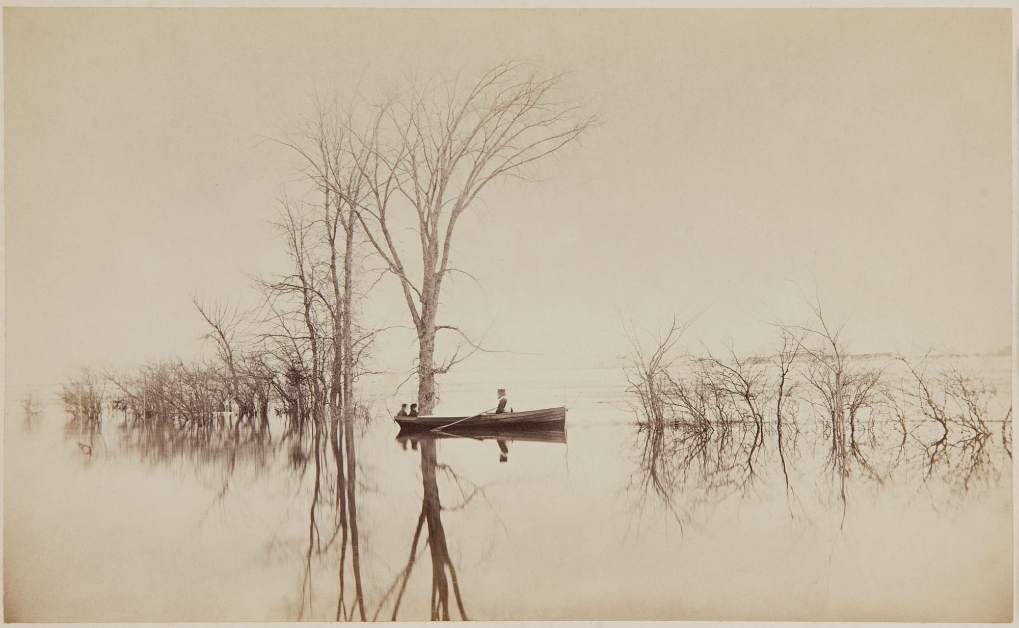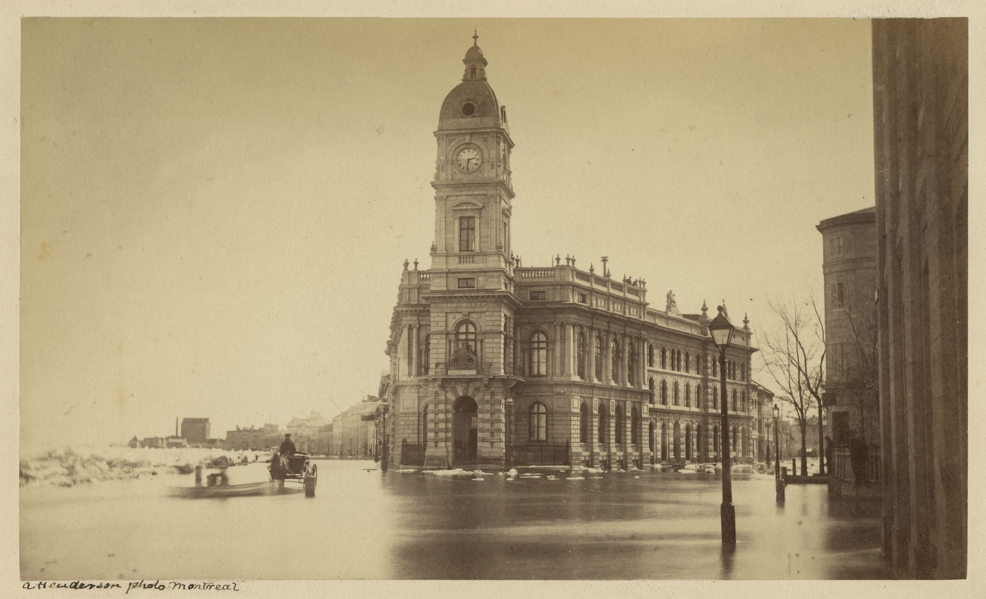 Reflecting Pool, Montreal College Grounds, Montreal, QC, 1860-1865 (left) and Spring flood, Royal Insurance Company building, Montreal, QC, about 1865 (right). | Photograph: Alexander Henderson (1831-1913) / McCord Stewart Museum