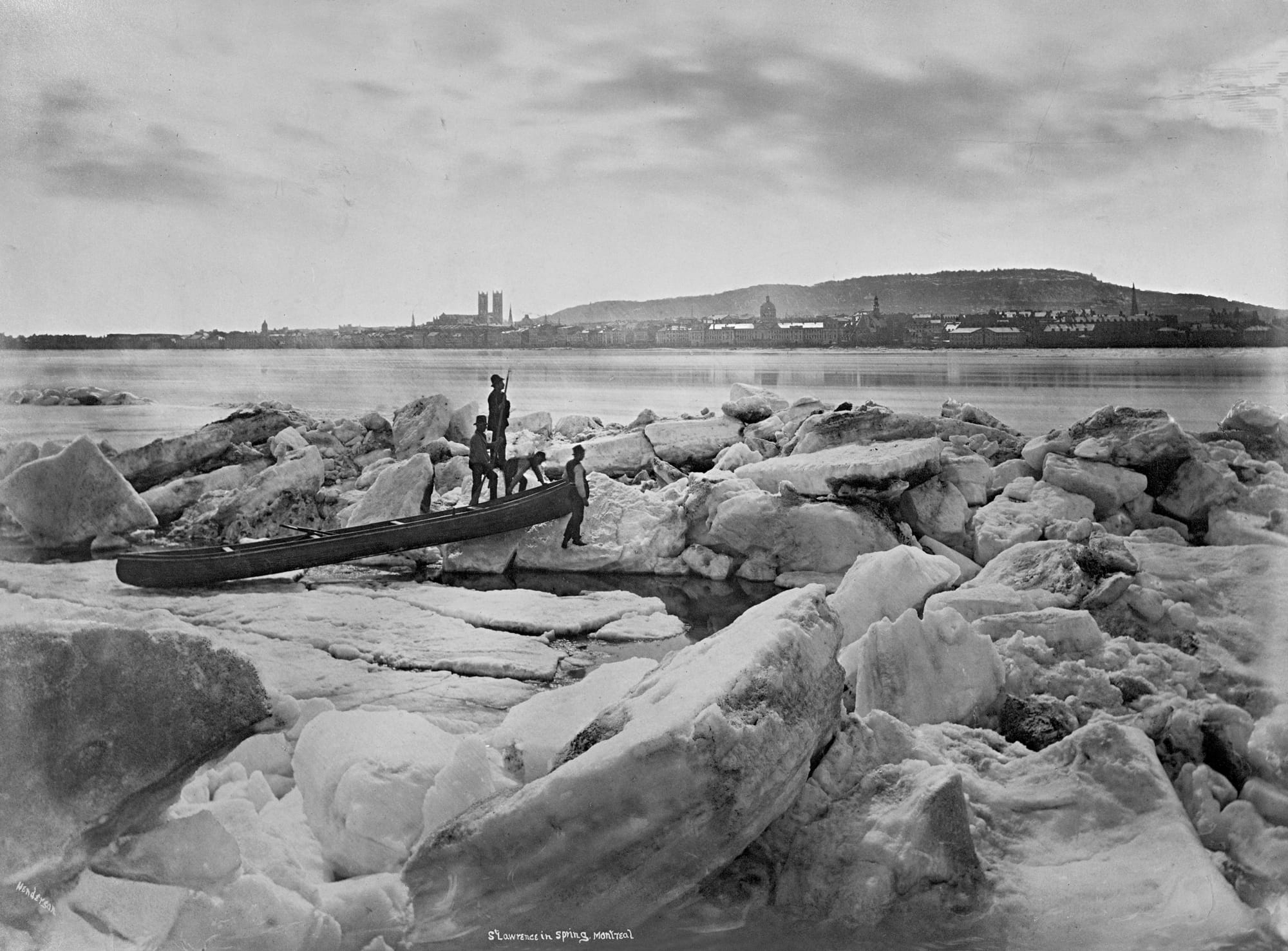 The Saint Lawrence in Spring, opposite Montreal, QC, 1875 (left) and Ice Maze, Winter Carnival, Place d'Armes, Montreal, QC, about 1887 (right). | Photograph: Alexander Henderson (1831-1913) / McCord Stewart Museum