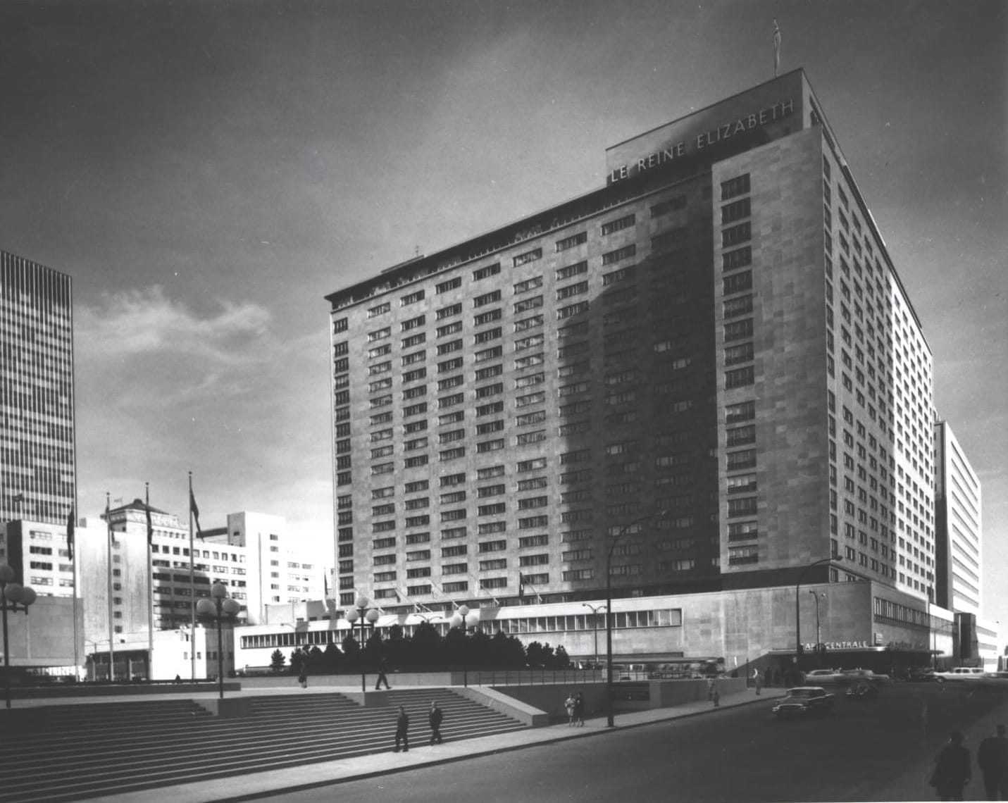 Built by the Canadian National Railway directly over Central Station, the 21-storey tower required 160 concrete pylons just to muffle the rumble of trains passing beneath it. At the time, the hotel was a marvel of hospitality engineering, numbering among the first hotels in North America to offer escalators, centralized air conditioning, and a direct-dial telephone in every room. Within three years of opening, it became the first property connected to what would grow into Montreal's Underground City, via an underground corridor linking it to Place Ville Marie.
