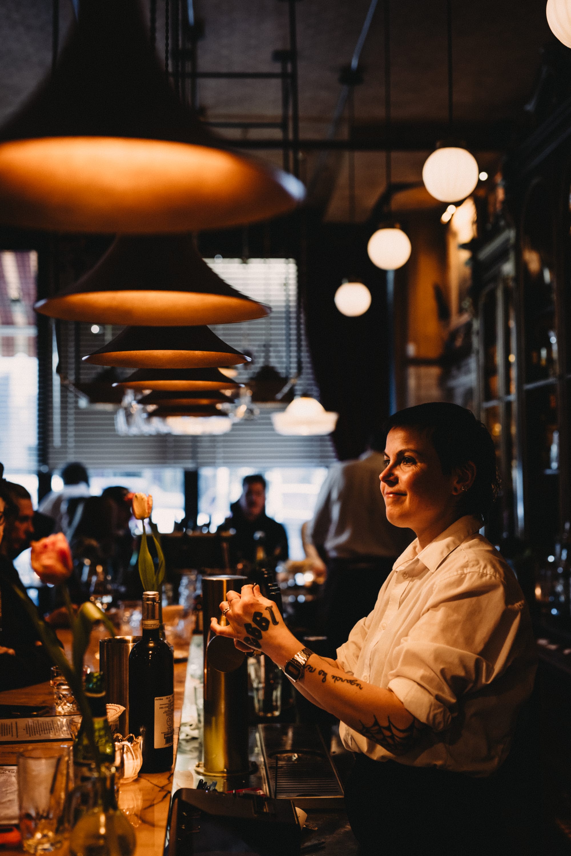 A tightly quartered kitchen gives off flames as bartenders spin around one another to pour martinis and wine, and the 110-seat dining room split across two salles is full to bursting with a cross-section of the city eating shoulder to shoulder. Think cotton tops next to bohemians with tatted sleeves next to 5 à 7 celebrations.