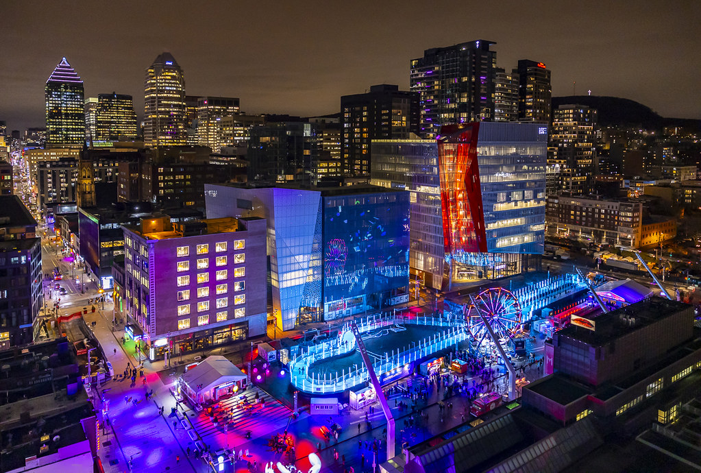 Quartier des Spectacles will be the site of our usual suspects: the Loto-Québec Skating Loop, the Village Gourmand under a heated big top, and the Intuit TurboTax Ferris wheel. New this year is a daily cooking competition at the Village Gourmand, plus theme days like a Cidre de glace du Québec celebration on March 6. If you need a break from the cold, Chez Canton—a pop-up fondue spot on the second floor of the Maison du Festival—is taking reservations through Libro.
