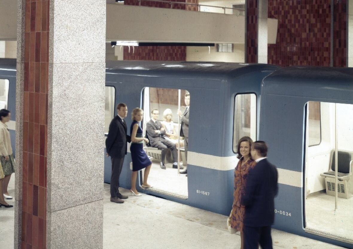 With fuss and fanfare, dignitaries and pretty girls, noise and confusion, Montreal’s magnificent metro was officially christened by some 5,000 enthusiastic citizens yesterday afternoon. … Trains filled with hundreds of special guests pulled out of the 19 stations along north-south and east-west lines to converge on the Berri-de Montigny station where the two lines meet. Within minutes, the first rubber-tired train rolled smoothly in and the first official subway travelers were greeted by a broadly smiling Mayor Drapeau. (The Gazette, Saturday, October 15, 1966)