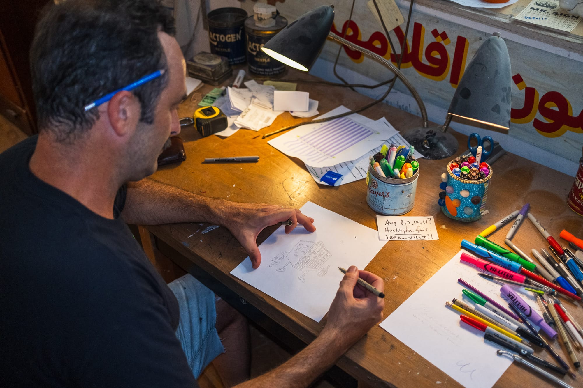 Armed with a toolkit of brushes and developing skills, his early efforts earned him $200 and a steak dinner. That’s since evolved into a 15-year career, during which he has designed many of Montreal’s most iconic signs, defining modern-day institutions through the time-honoured craft of hand-painted signage.