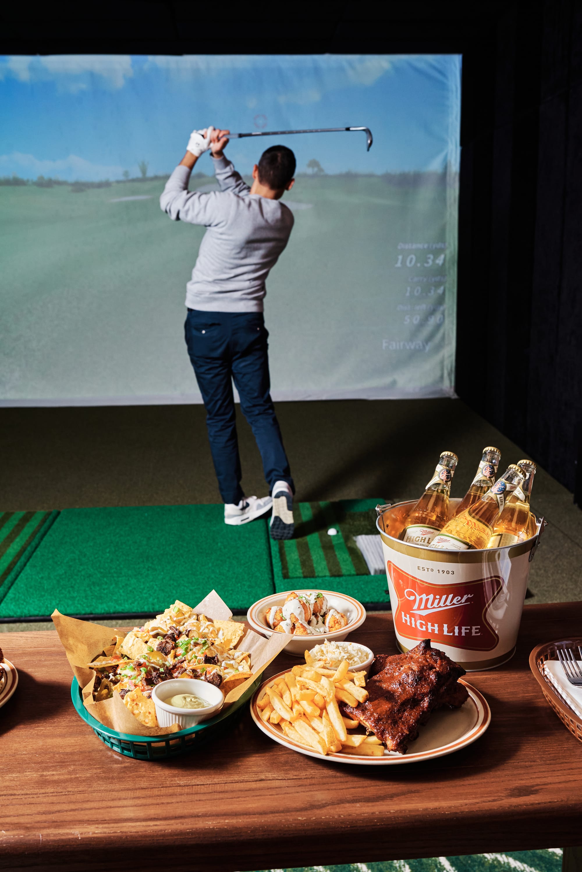 Muni, an 8,000-square-foot urban indoor golf club that blends high-tech simulators, Southern-inspired eats, and a boutique pro shop offers time on the green by bringing the fairway into the city. Styled as more than just another sports bar, Muni trades shoving simulators into the corner for an alternative to the country club.