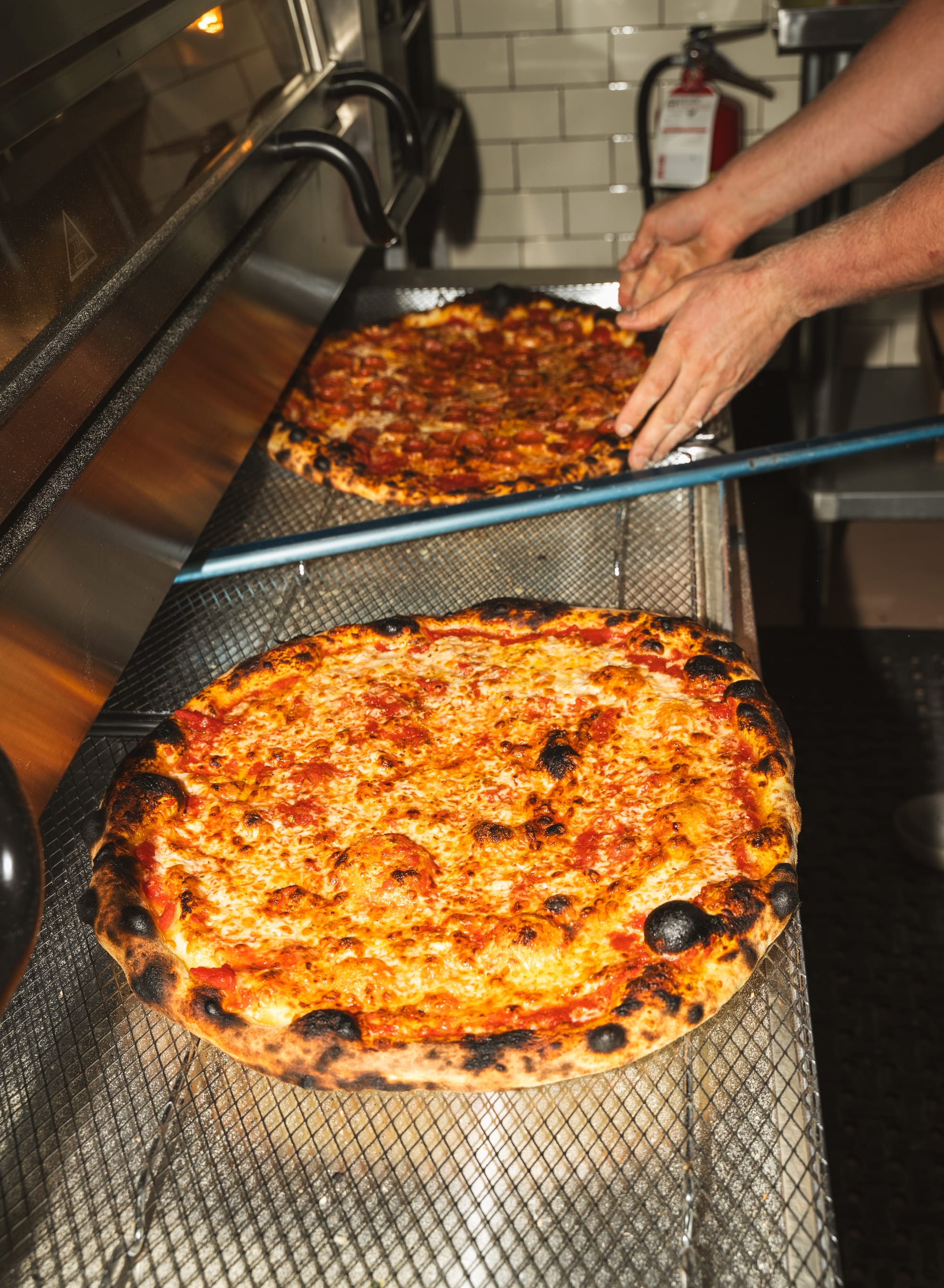 They did: They weren't cooking up the wood-fired Neapolitan pies they're known for in Saint-Henri, but proper 18-inch New York-style pizzas baked in deck ovens, designed for volume, reheating, and feeding very discerning crowds—pies that are on offer at Elena Pizzeria in Griffintown.