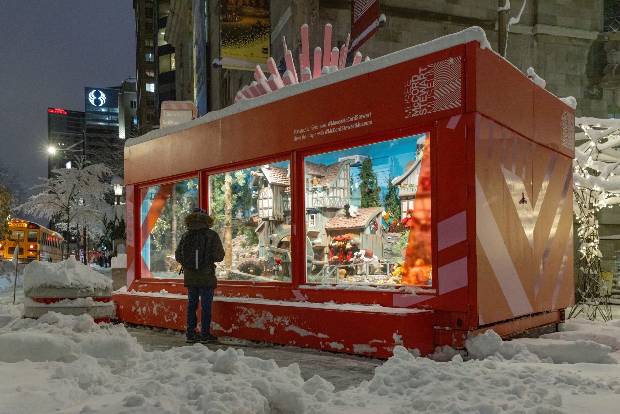 Now, the museum presents both every winter from November through early January, just as the store used to. The Mill in the Forest sits outside in a container at Sherbrooke and Victoria and The Enchanted Village is set up indoors.