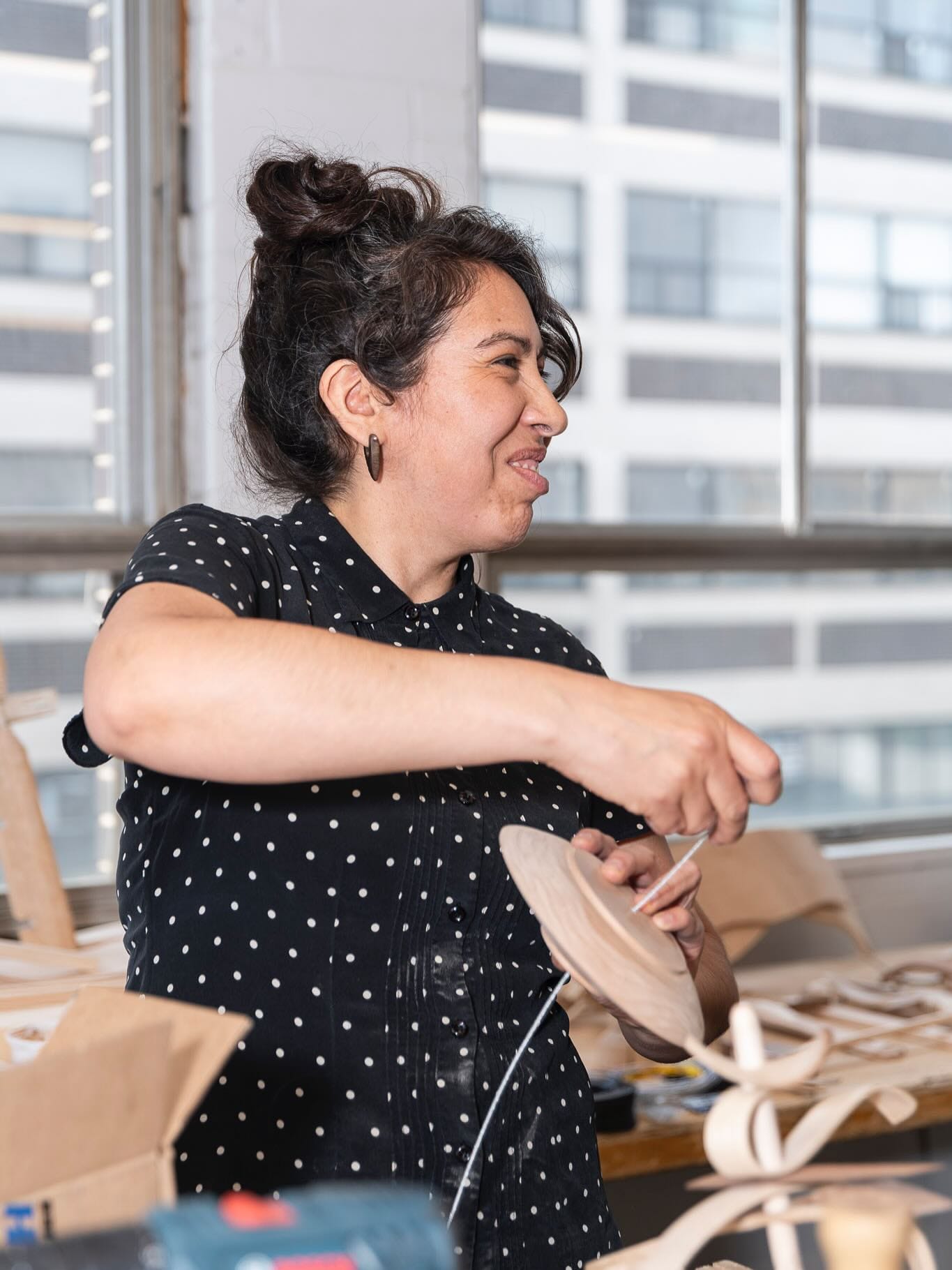 But perhaps the most forward-looking element is "Nouveaux horizons," an exhibition of furniture, mobiles, and wall sculptures created through the Parcours Nouveaux Arrivants program. Launched this year by the Conseil in partnership with École d'ébénisterie d'art de Montréal, the pilot project helps newly arrived artisans integrate into Quebec's craft sector through technical refinement, professional French-language training, and network building. The pieces on display represent the first cohort—woodworkers bringing their own traditions into dialogue with local practices.