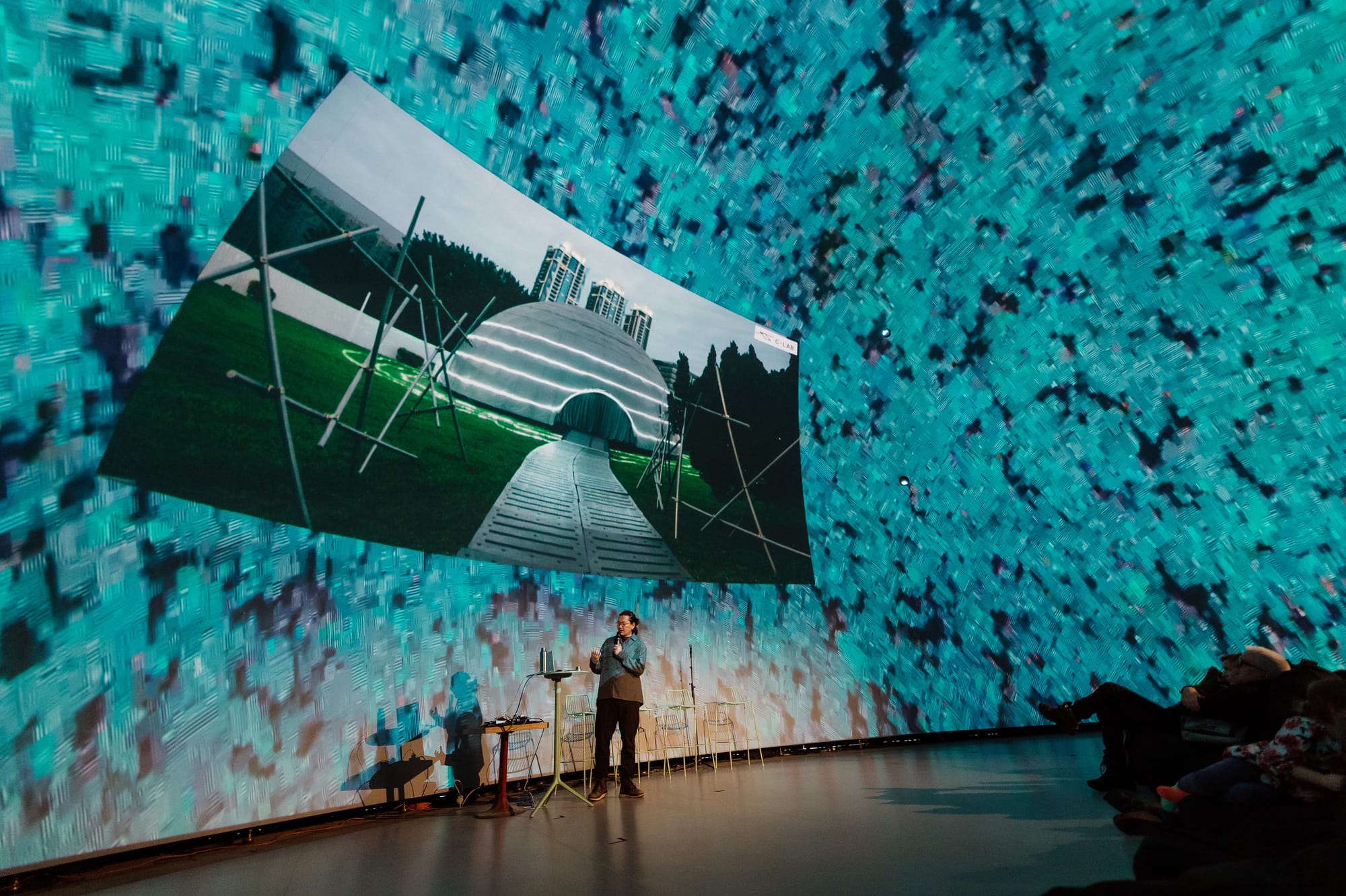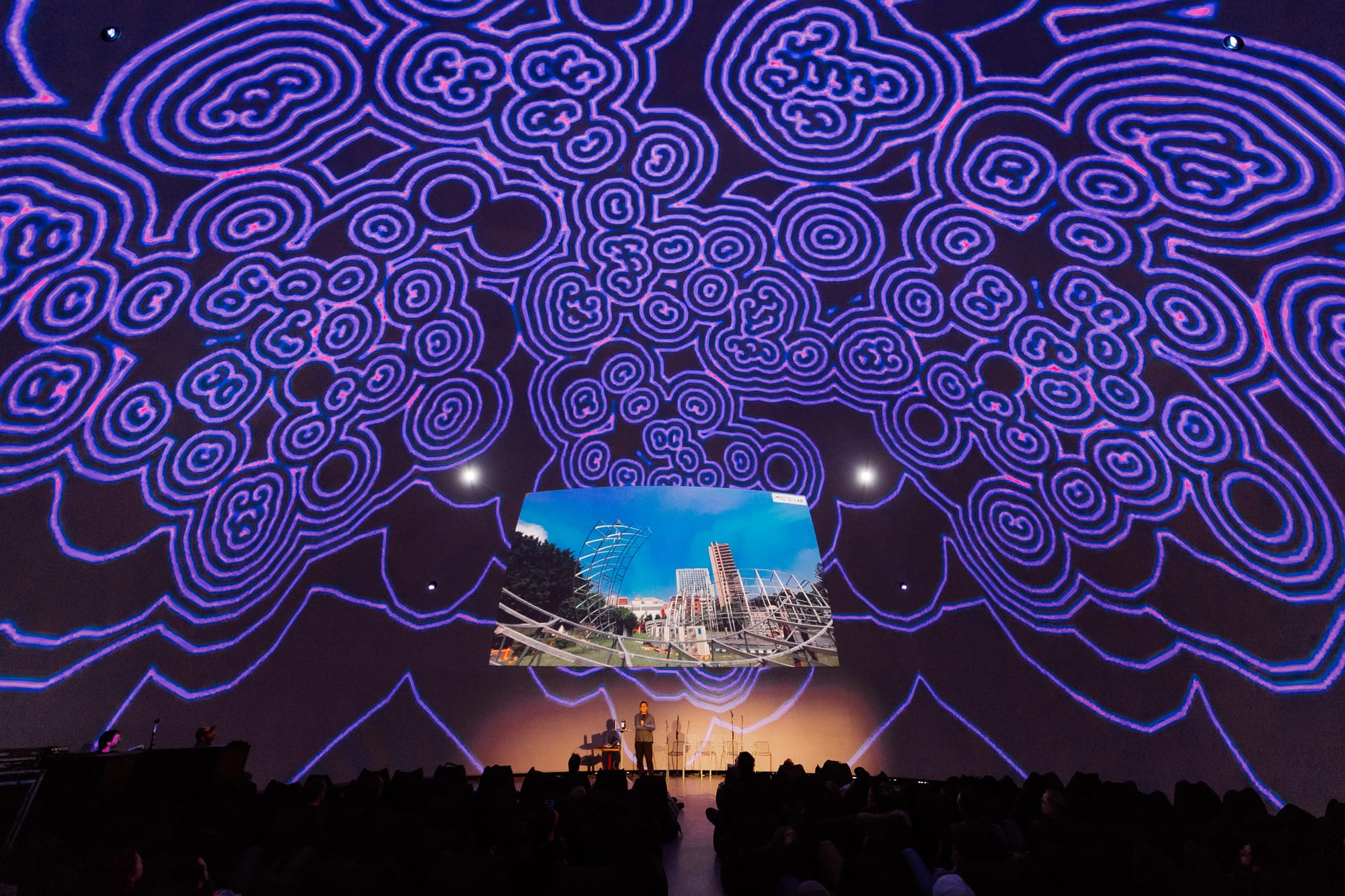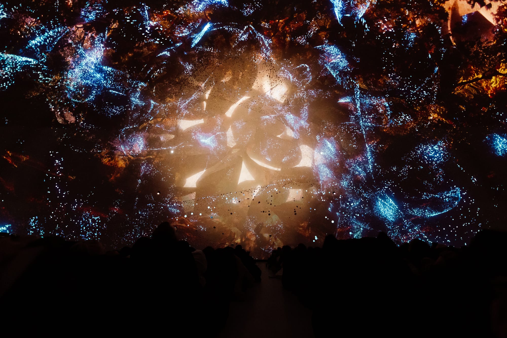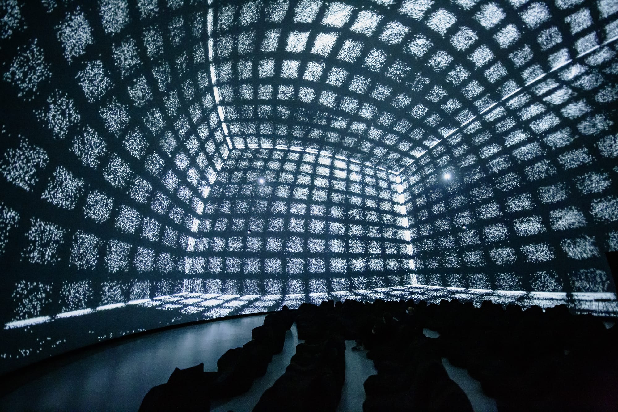 At 18 metres wide and 11.5 metres high, with eight 4K projectors running at 34,000 lumens each and 93.5 speakers wrapping the space in precisely spatialized sound, it's one of the most technically advanced audiovisual environments in the city.