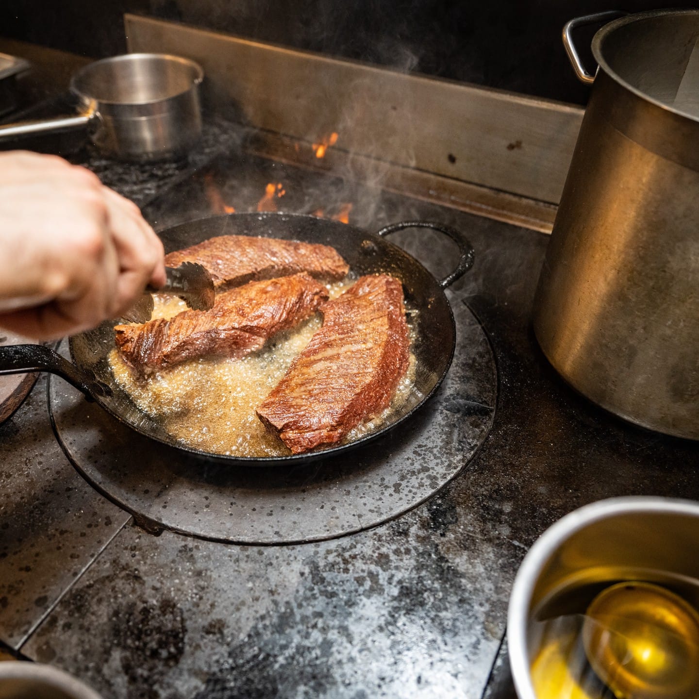 “A lot of cooks want to do very chef-forward things—frozen foie gras shaving, sous-vide this and fermented that—and I say OK, but if you put all these techniques together, it needs to be delicious. Sometimes just anchovies and butter with some sourdough is all you need,” he says.