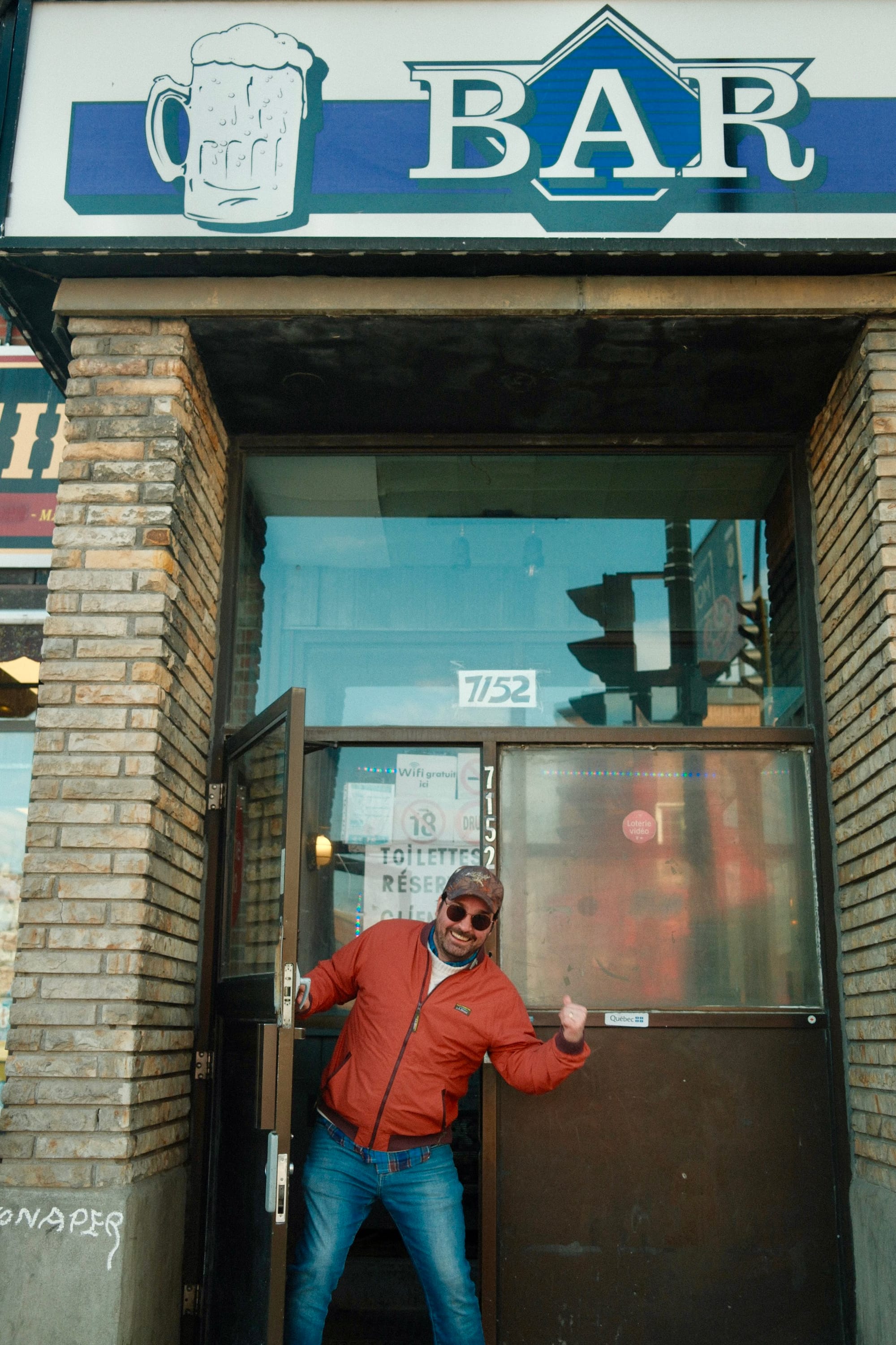 Grabbing beers with John Batt on Plaza Saint-Hubert.